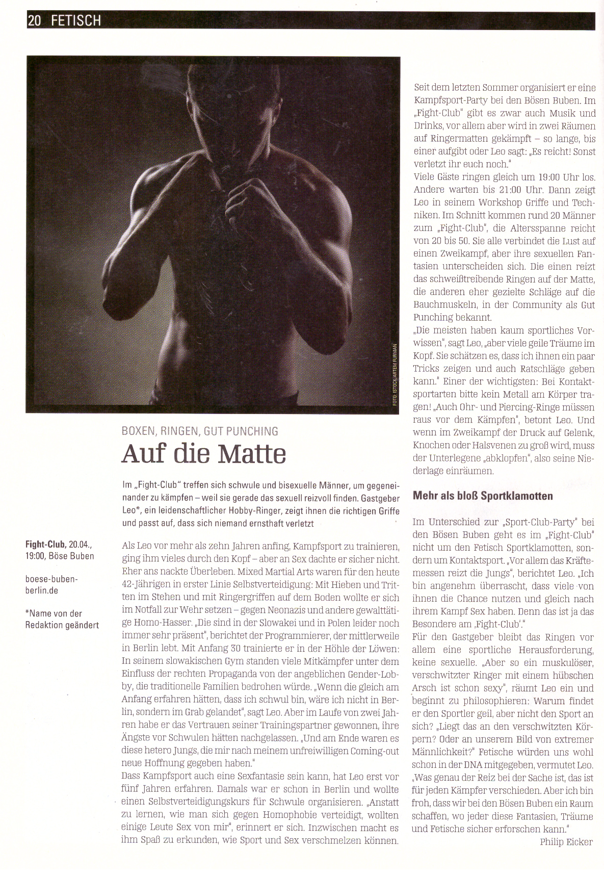 In the April 2023 issue, the queer Berlin city magazine “Siegessäule” also reports about Fight-Club: